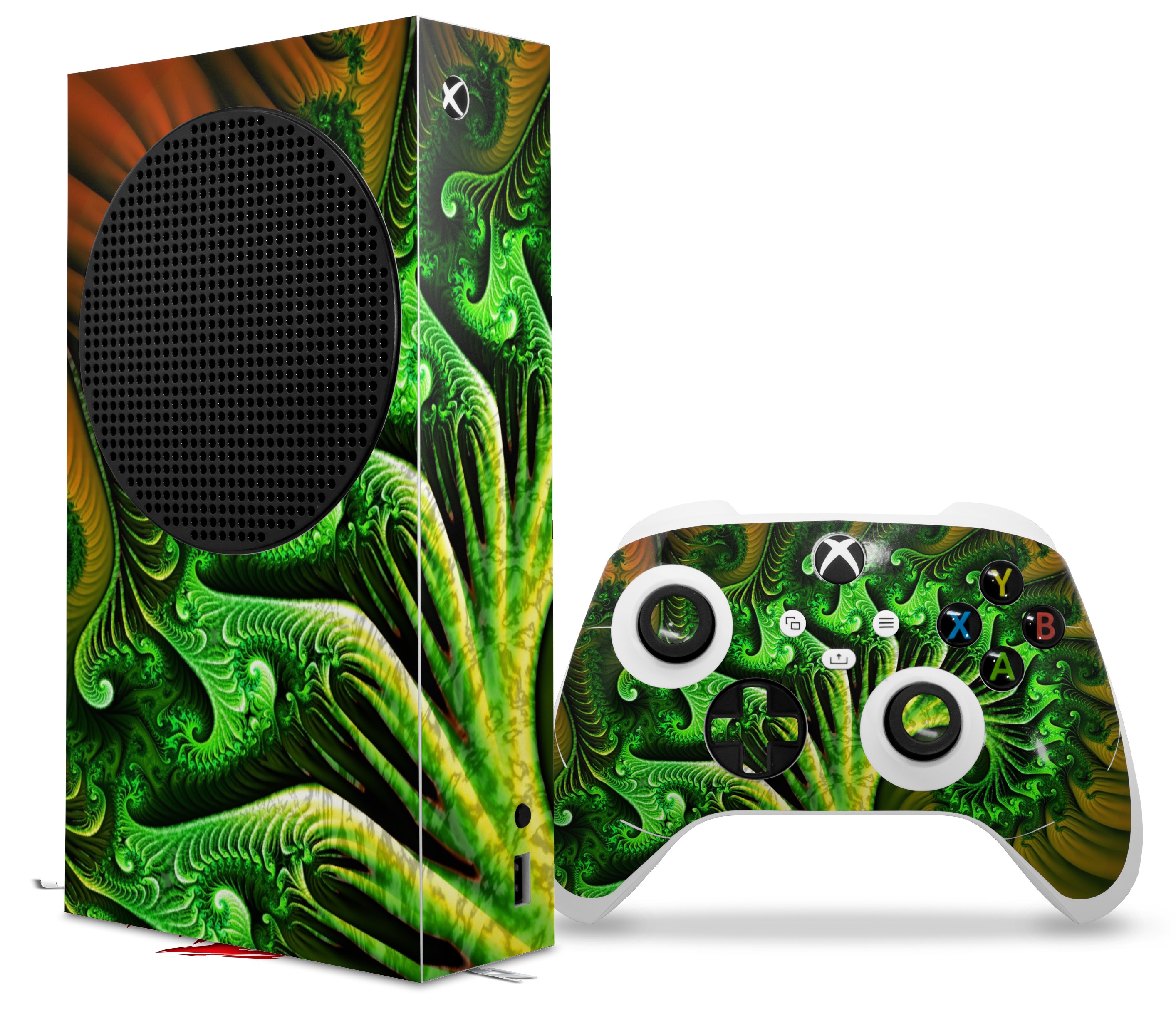 WraptorSkinz® skin wraps for the XBOX Series S gaming console and controller released November 2020 are printed using superb photo quality designs and vibrant colors printed with special fade resistant inks that last even in direct sun for years. WraptorSkinz are a composite of two layers of commercial grade materials. The bottom layer is a soft, flexible vinyl with a special removable adhesive that is easily positioned, applied without air bubbles. Next, we print the bottom layer with UV protected, fade resistant inks that deliver superb photo quality designs in vibrant colors. Last, we bond a professional grade laminate over the entire skin adding a glossy protective finish. This product is not affiliated with or endorsed by Microsoft or the XBOX brand.
