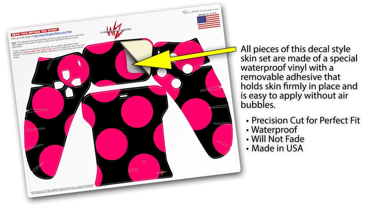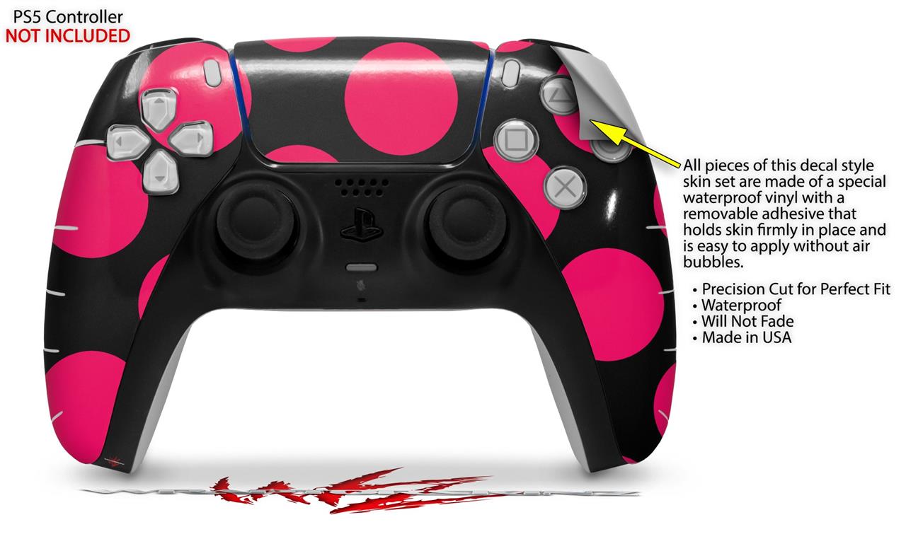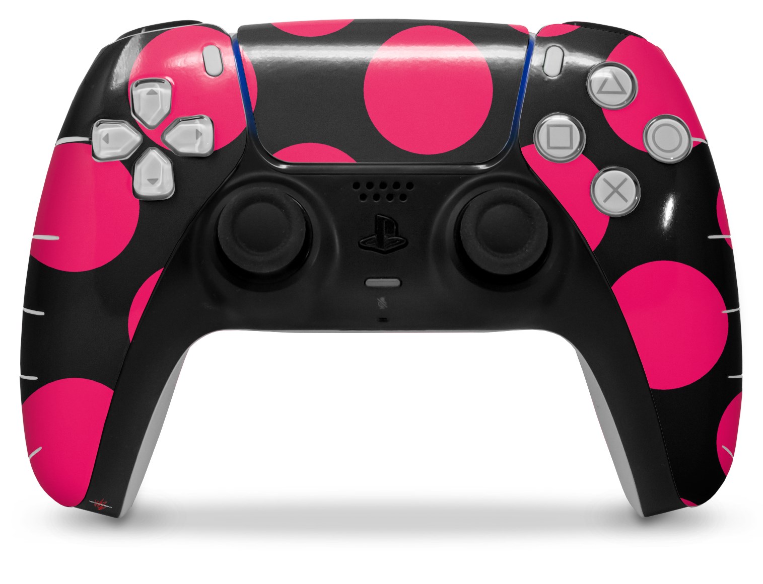 WraptorSkinz Skin Wrap compatible with the Sony PS5 DualSense Controller Kearas Polka Dots Pink On Black (CONTROLLER NOT INCLUDED)