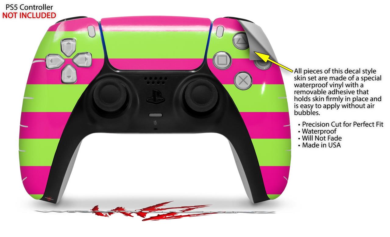 WraptorSkinz Skin Wrap compatible with the Sony PS5 DualSense Controller Psycho Stripes Neon Green and Hot Pink (CONTROLLER NOT INCLUDED)