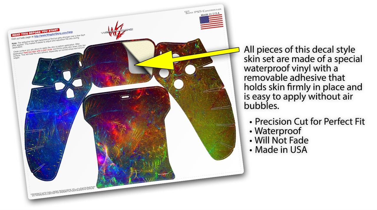 WraptorSkinz® skin wraps for the Sony Playstation 5 controller are printed using superb photo quality designs and vibrant colors printed with special fade resistant inks that last even in direct sun for years. WraptorSkinz are a composite of two layers of commercial grade materials. The bottom layer is a soft, flexible vinyl with a special removable adhesive that is easily positioned, applied without air bubbles. Next we print the bottom layer with UV protected, fade resistant inks that deliver superb photo quality designs in vibrant colors. Last, we bond a professional grade laminate over the entire skin adding a glossy protective finish. This product is not affiliated with or endorsed by Sony or the Playstation brand.