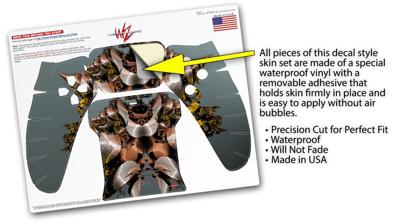 WraptorSkinz® skin wraps for the Sony Playstation 5 controller are printed using superb photo quality designs and vibrant colors printed with special fade resistant inks that last even in direct sun for years. WraptorSkinz are a composite of two layers of commercial grade materials. The bottom layer is a soft, flexible vinyl with a special removable adhesive that is easily positioned, applied without air bubbles. Next we print the bottom layer with UV protected, fade resistant inks that deliver superb photo quality designs in vibrant colors. Last, we bond a professional grade laminate over the entire skin adding a glossy protective finish. This product is not affiliated with or endorsed by Sony or the Playstation brand.
