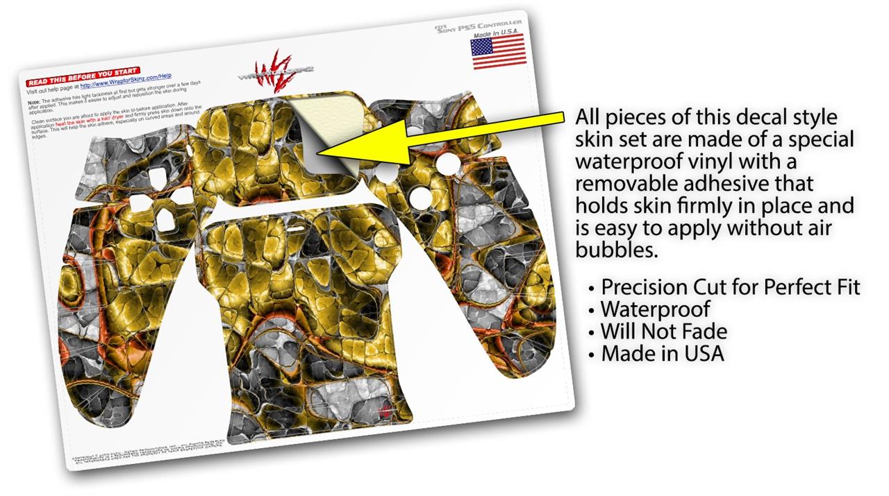 WraptorSkinz® skin wraps for the Sony Playstation 5 controller are printed using superb photo quality designs and vibrant colors printed with special fade resistant inks that last even in direct sun for years. WraptorSkinz are a composite of two layers of commercial grade materials. The bottom layer is a soft, flexible vinyl with a special removable adhesive that is easily positioned, applied without air bubbles. Next we print the bottom layer with UV protected, fade resistant inks that deliver superb photo quality designs in vibrant colors. Last, we bond a professional grade laminate over the entire skin adding a glossy protective finish. This product is not affiliated with or endorsed by Sony or the Playstation brand.
