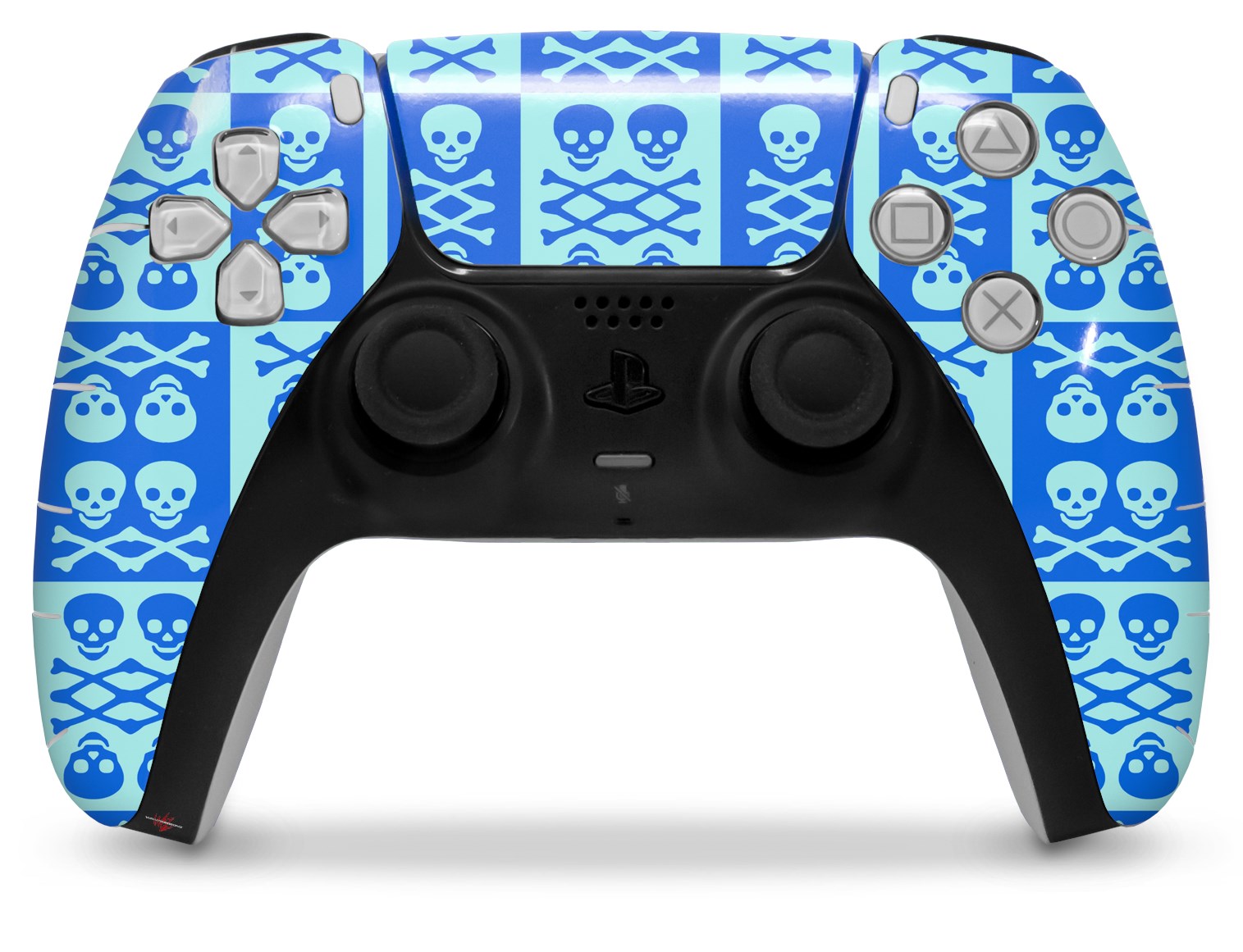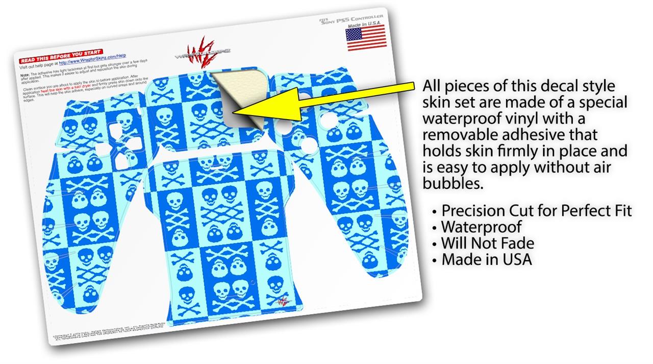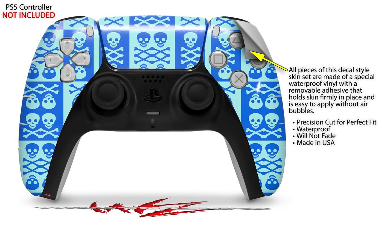 WraptorSkinz Skin Wrap compatible with the Sony PS5 DualSense Controller Skull And Crossbones Pattern Blue (CONTROLLER NOT INCLUDED)