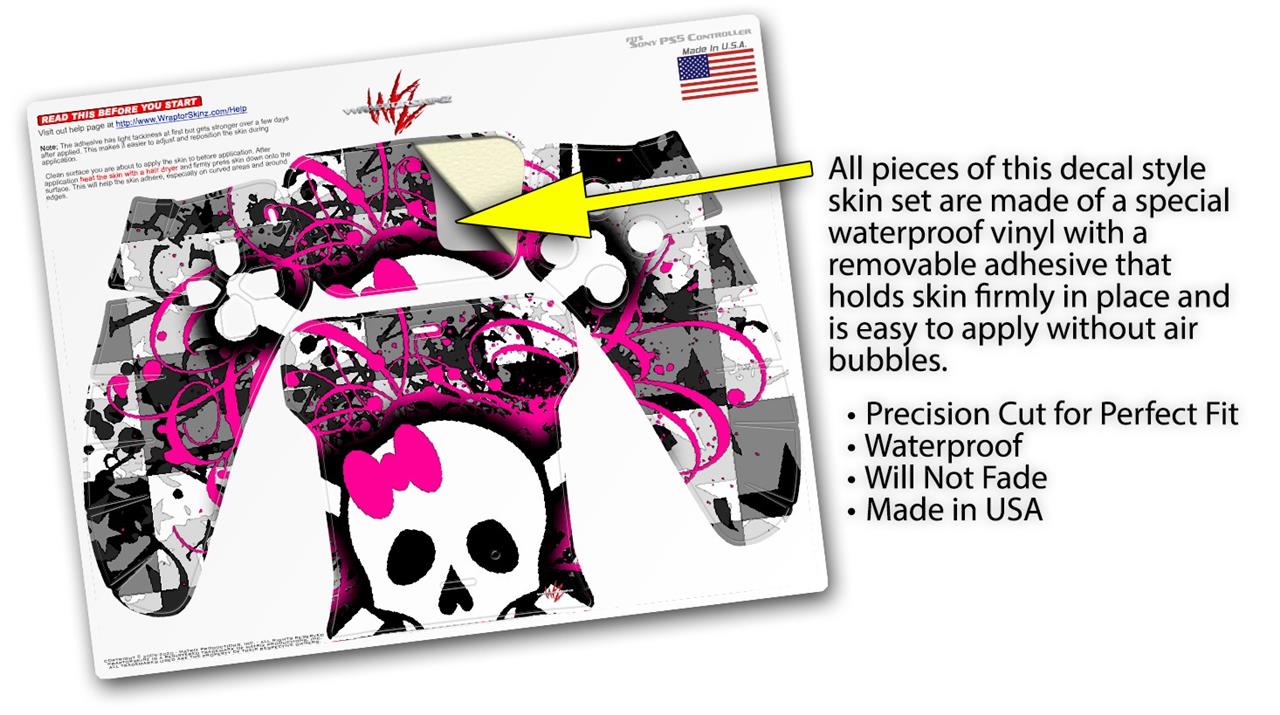 WraptorSkinz Skin Wrap compatible with the Sony PS5 DualSense Controller Splatter Girly Skull (CONTROLLER NOT INCLUDED)