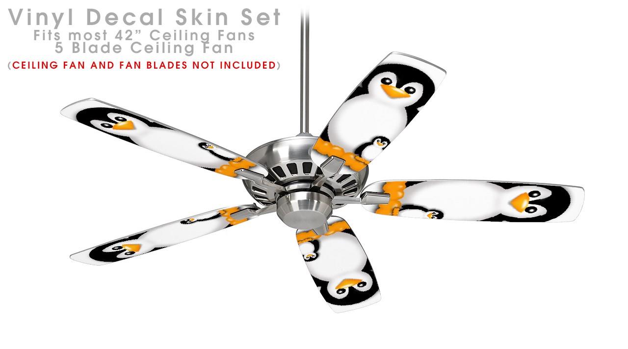 Penguins on White - Ceiling Fan Skin Kit fits most 42 inch fans (FAN and BLADES SOLD SEPARATELY)