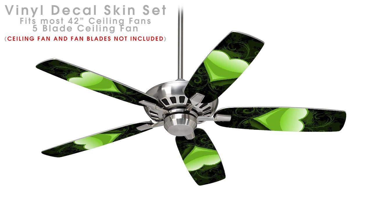 Glass Heart Grunge Green - Ceiling Fan Skin Kit fits most 42 inch fans (FAN and BLADES SOLD SEPARATELY)