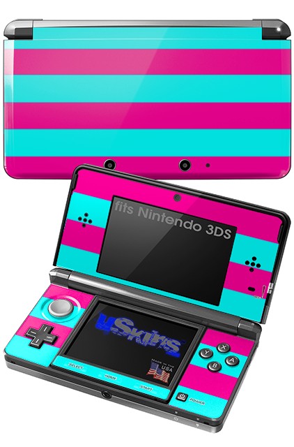 Psycho Stripes Neon Teal and Hot Pink - Decal Style Skin fits Nintendo 3DS (3DS SOLD SEPARATELY)