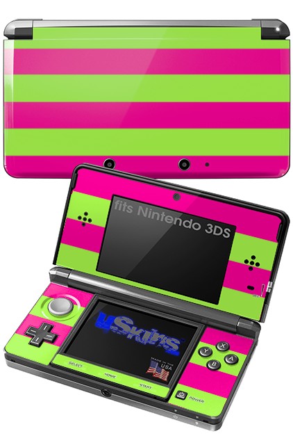 Psycho Stripes Neon Green and Hot Pink - Decal Style Skin fits Nintendo 3DS (3DS SOLD SEPARATELY)