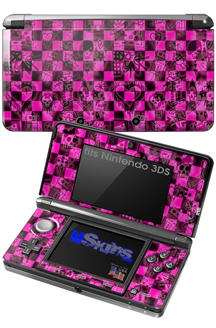 Pink Checkerboard Sketches - Decal Style Skin fits Nintendo 3DS (3DS SOLD SEPARATELY)