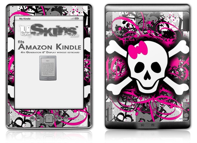 Splatter Girly Skull - Decal Style Skin (fits 4th Gen Kindle with 6inch display and no keyboard)