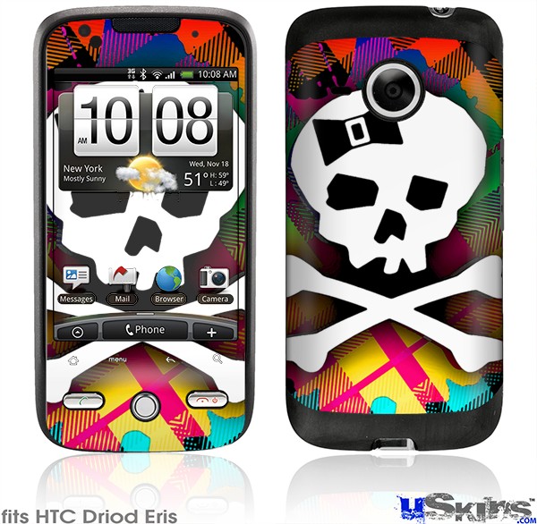 HTC Droid Eris Skin - Rainbow Plaid Skull