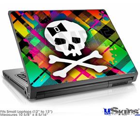 Laptop Skin (Small) - Rainbow Plaid Skull