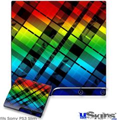 Decal Skin compatible with Sony PS3 Slim Rainbow Plaid