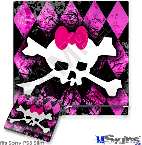 Decal Skin compatible with Sony PS3 Slim Pink Diamond Skull