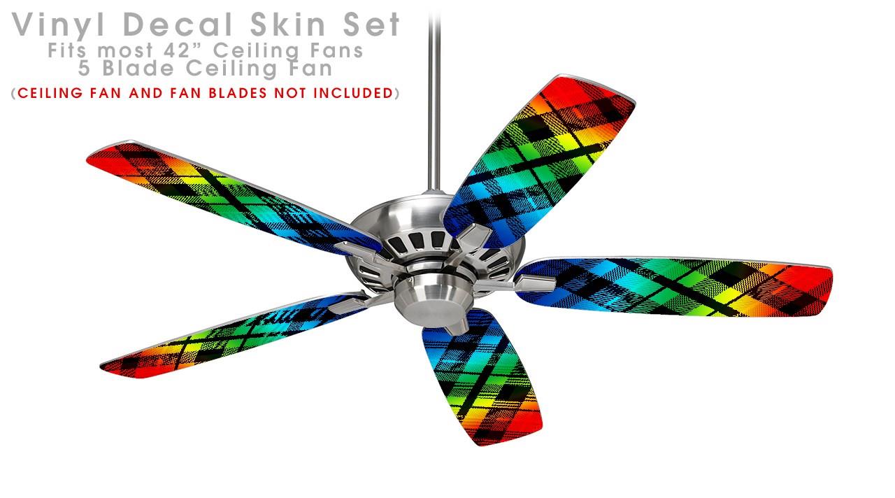Rainbow Plaid - Ceiling Fan Skin Kit fits most 42 inch fans (FAN and BLADES SOLD SEPARATELY)