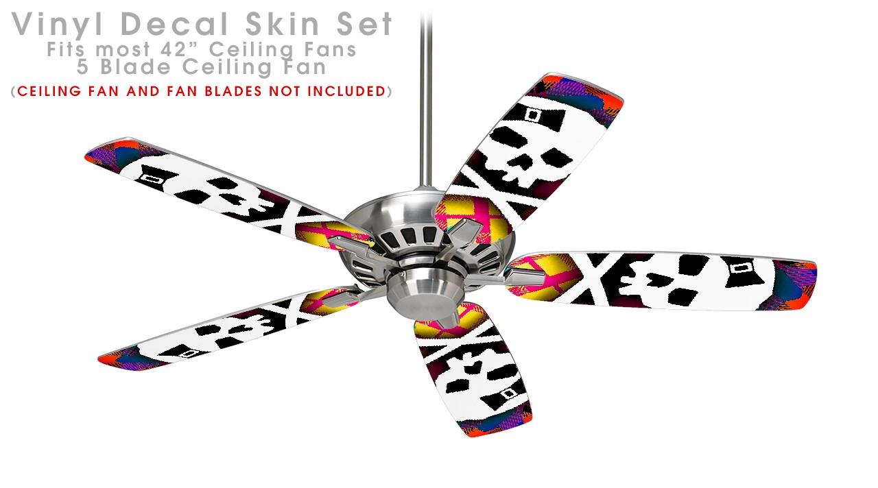 Rainbow Plaid Skull - Ceiling Fan Skin Kit fits most 42 inch fans (FAN and BLADES SOLD SEPARATELY)