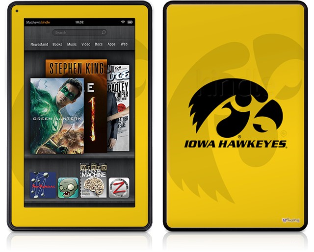 Amazon Kindle Fire (Original) Decal Style Skin - Iowa Hawkeyes Herkey Black on Gold