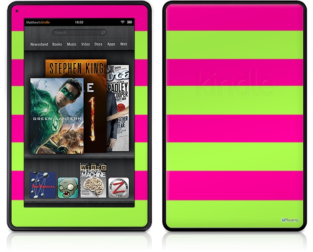 Amazon Kindle Fire (Original) Decal Style Skin - Psycho Stripes Neon Green and Hot Pink