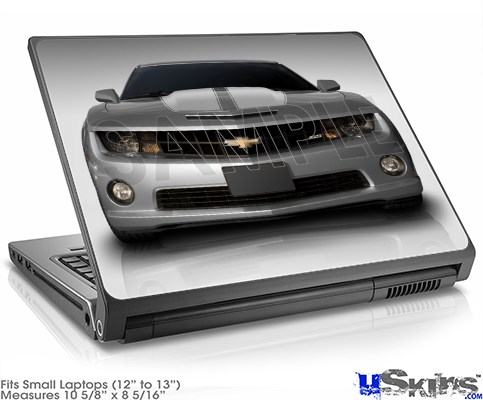 Laptop Skin (Small) - 2010 Chevy Camaro Silver - White Stripes