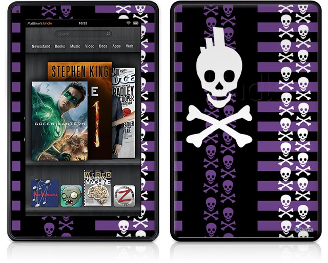 Amazon Kindle Fire (Original) Decal Style Skin - Skulls and Stripes 6