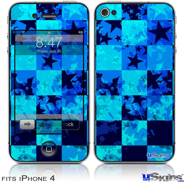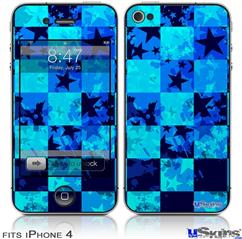 iPhone 4 Decal Style Vinyl Skin - Blue Star Checkers (DOES NOT fit newer iPhone 4S)