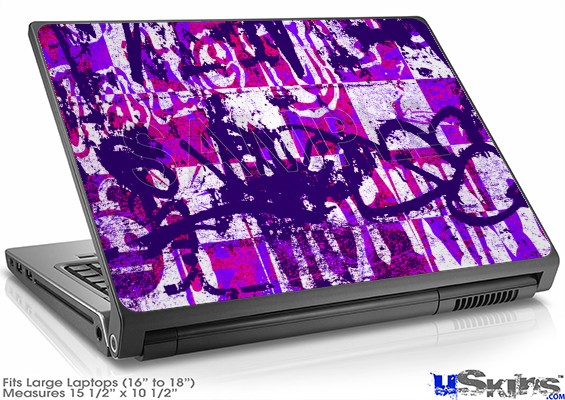 Laptop Skin (Large) - Purple Checker Graffiti