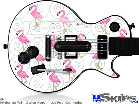 Guitar Hero III Wii Les Paul Skin - Flamingos on White