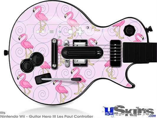 Guitar Hero III Wii Les Paul Skin - Flamingos on Pink