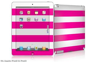 iPad Skin - Psycho Stripes Hot Pink and White (fits iPad2 and iPad3)