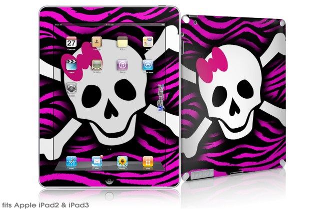 iPad Skin - Pink Zebra Skull (fits iPad2 and iPad3)