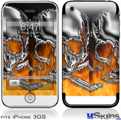 iPhone 3GS Skin - Chrome Skull on Fire