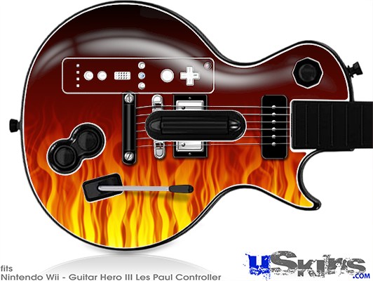 Guitar Hero III Wii Les Paul Skin - Fire Flames on Black
