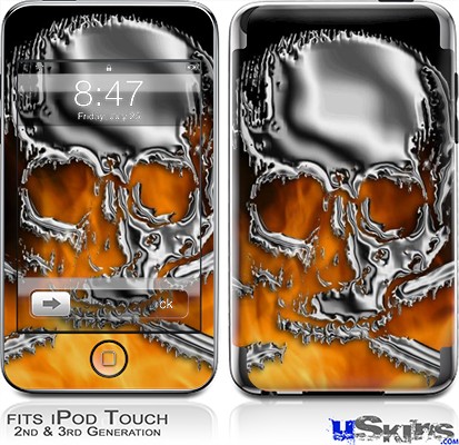 iPod Touch 2G & 3G Skin - Chrome Skull on Fire