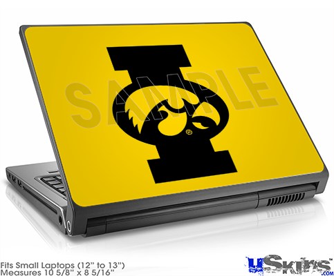 Laptop Skin (Small) - Iowa Hawkeyes Tigerhawk Oval 02 Black on Gold