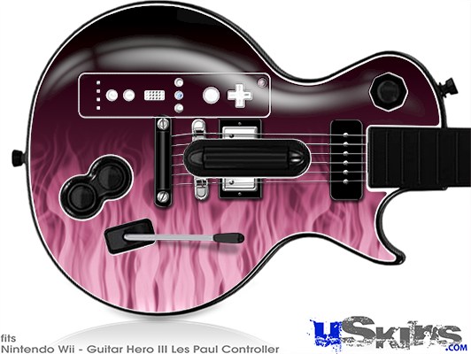 Guitar Hero III Wii Les Paul Skin - Fire Flames Pink