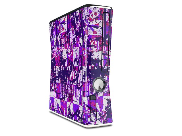 Purple Checker Graffiti Decal Style Skin for XBOX 360 Slim Vertical