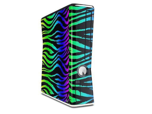 Rainbow Zebra Decal Style Skin for XBOX 360 Slim Vertical