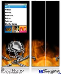 iPod Nano 4G Skin - Chrome Skull on Fire