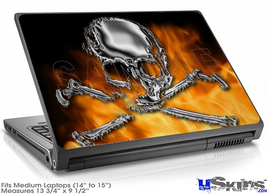 Laptop Skin (Medium) - Chrome Skull on Fire