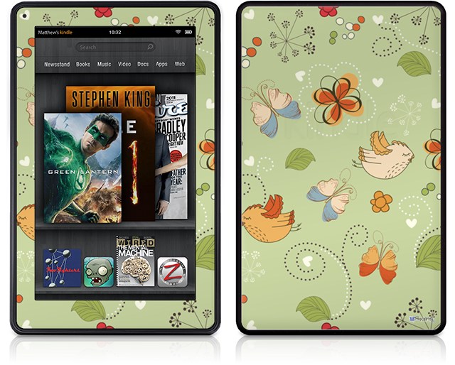 Amazon Kindle Fire (Original) Decal Style Skin - Birds Butterflies and Flowers