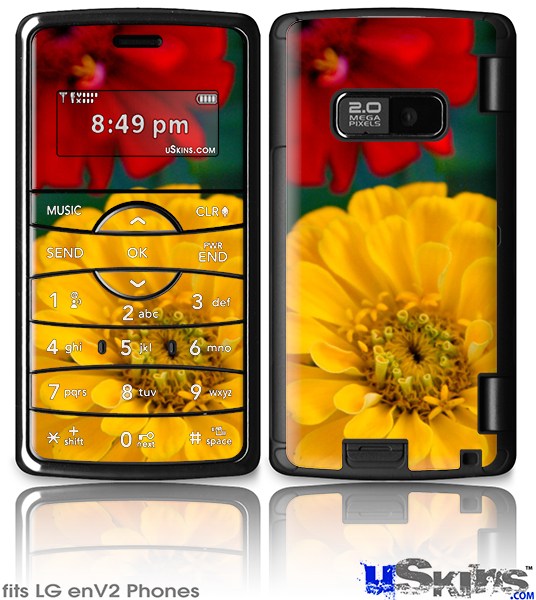 Skin covers front and back of LG enV2 cell phone.