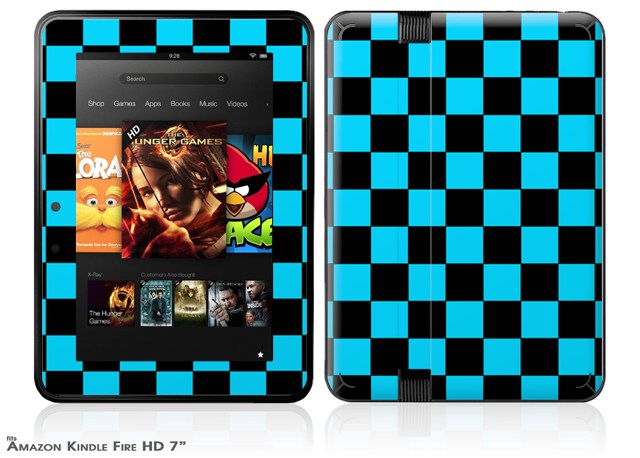 Checkers Blue Decal Style Skin fits 2012 Amazon Kindle Fire HD 7 inch