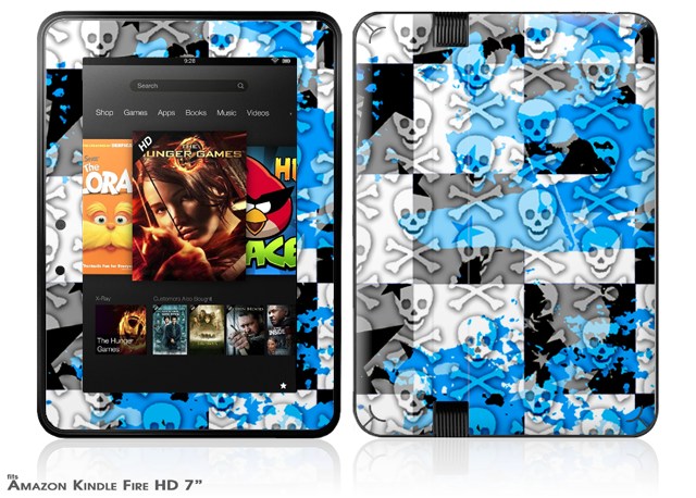 Checker Skull Splatter Blue Decal Style Skin fits 2012 Amazon Kindle Fire HD 7 inch