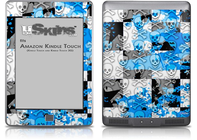 Checker Skull Splatter Blue - Decal Style Skin (fits Amazon Kindle Touch Skin)