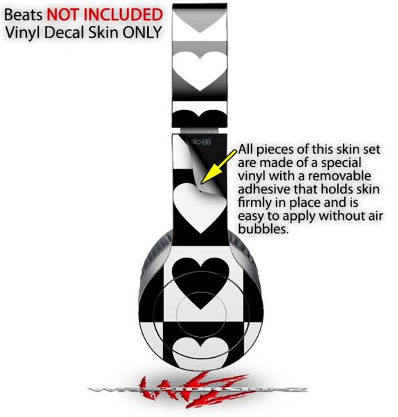 WraptorSkinz Skin Decal Wrap compatible with Beats Solo HD (Original) Hearts And Stars Black and White (HEADPHONES NOT INCLUDED)