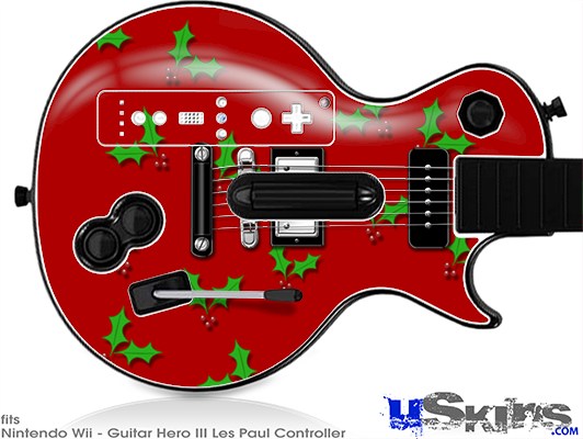 Guitar Hero III Wii Les Paul Skin - Holly Leaves on Red