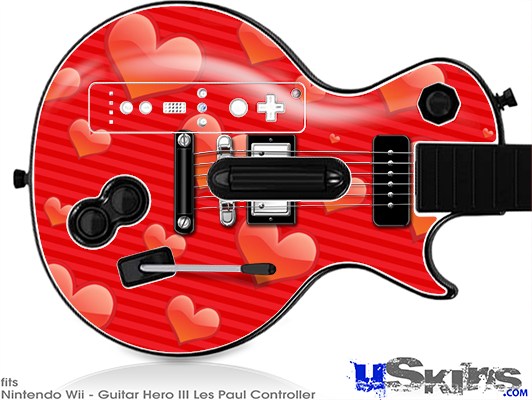 Guitar Hero III Wii Les Paul Skin - Glass Hearts Red