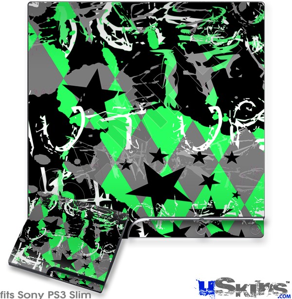 Decal Skin compatible with Sony PS3 Slim SceneKid Green