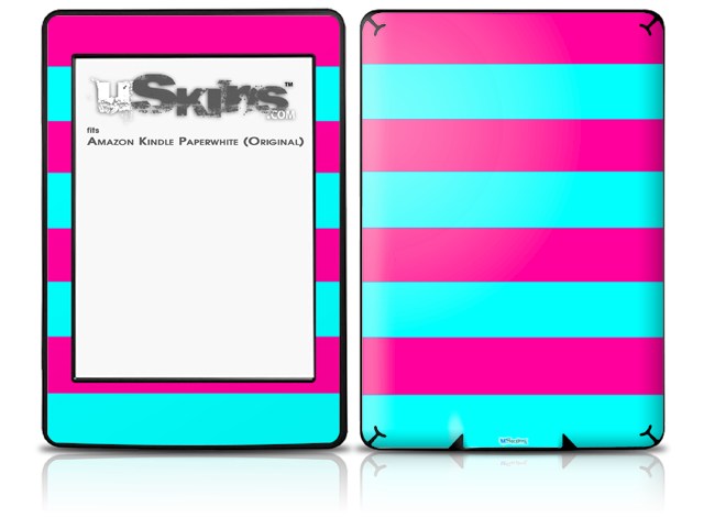 Psycho Stripes Neon Teal and Hot Pink - Decal Style Skin fits Amazon Kindle Paperwhite (Original)