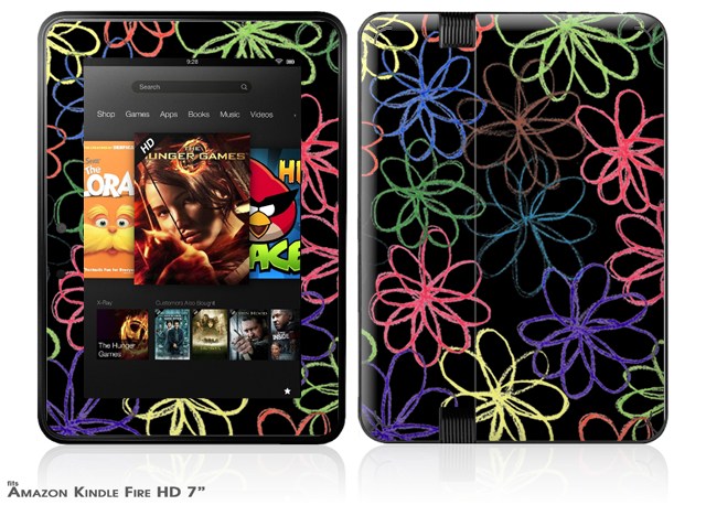 Kearas Flowers on Black Decal Style Skin fits 2012 Amazon Kindle Fire HD 7 inch